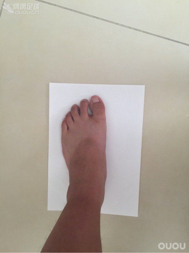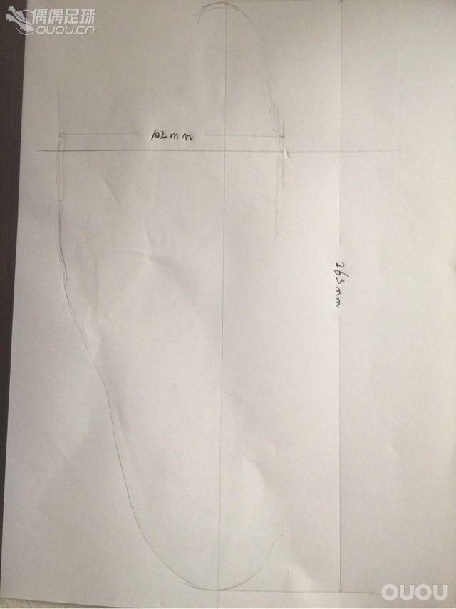 更正一下,光脚量:脚长263mm,脚宽102mm。上次是直接量的脚,这次是在纸上比着脚量的。