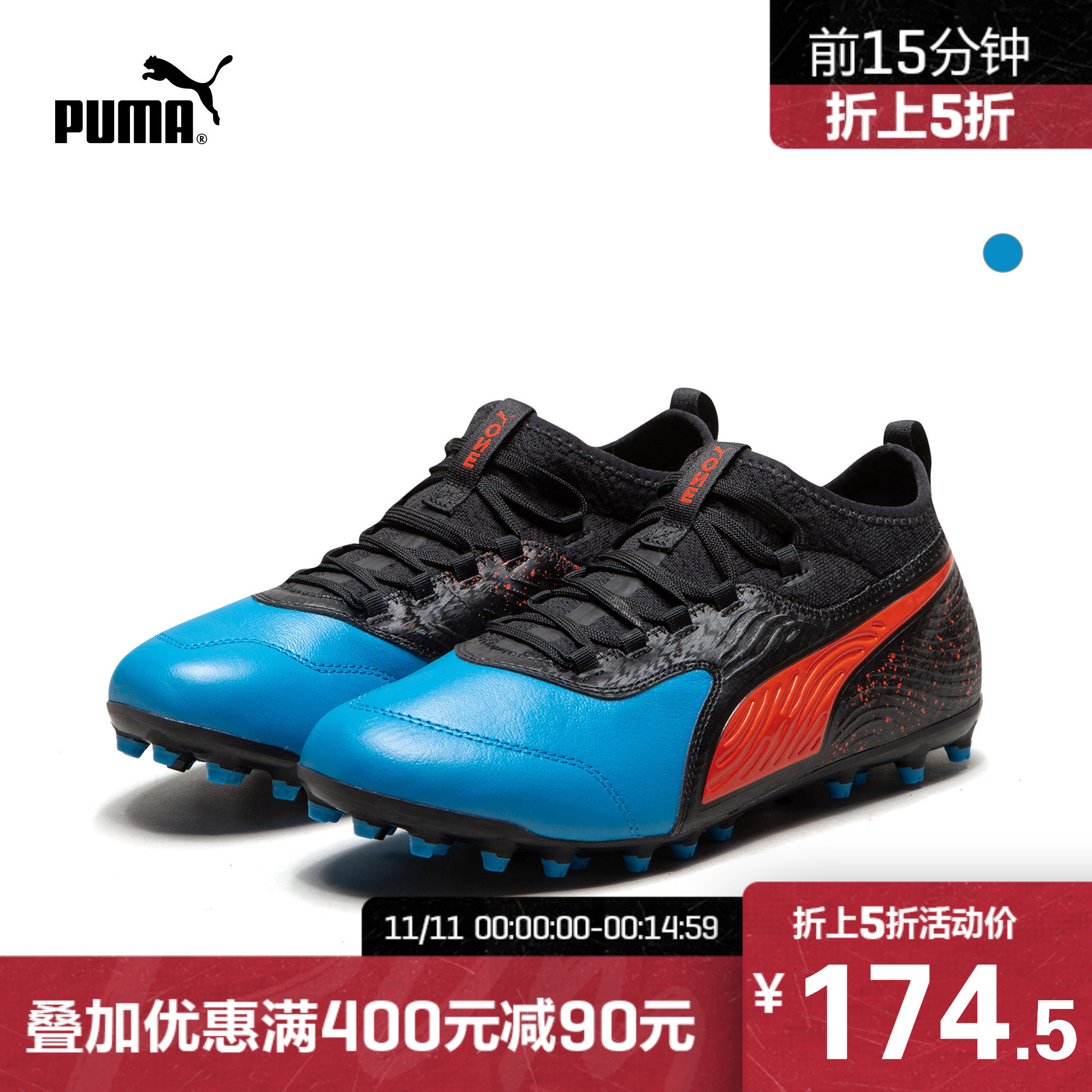原价599元,现偶偶购商家双11售价349元,双11折上折活动最低174.5元。彪马 男子足球鞋 PUMA ONE 19.3 MG ,货号为:105614-01。后跟设有提拉设计;鞋领包边设计;抓地耐穿外底;鞋侧可见经典跑道元素,套穿式结构,方便穿脱;适合多种场地;人造革、头层牛皮革和织物鞋面。此款足球鞋原价599元,现偶偶购商家双11售价349元,双11折上折活动最低174.5元。尺码齐全,赶紧收藏双11抢购!