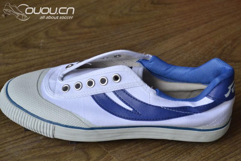 后跟写着大大的石林两个字,展示了它的血统。但与鞋头相比后跟就稍显不足了,帆布和海绵组成的后跟穿着还算舒适,可保护性在当今皮足盛行的球场就不够了,和皮足碰一下估计有破口的危险,甚至伤到皮肉,所以石林牌足球鞋我们只能把它定位在业余级别。