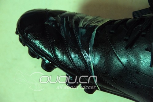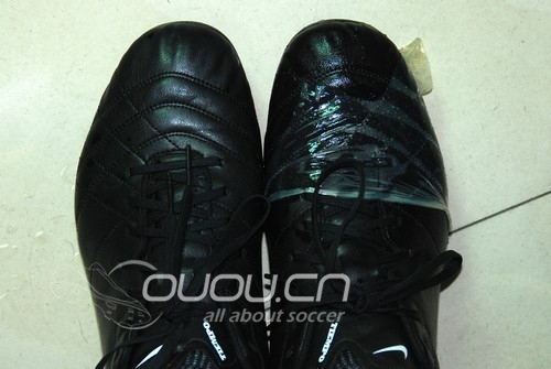 1,材料:从版主werzat处购得2手Nike传奇4低端AG足球鞋一双,因宽脚小脚趾处略有压迫,故拿来做实验;实验参与人为作者本人,脚长262,左脚宽10.5,右脚宽11,穿阿迪低端卡卡1代HGJP275略大,穿阿迪低端猎9TFJP265略小,穿PUMA鲁道夫HGJP270小脚趾较紧,穿美津浓无回旋2TFJP270小脚趾较紧,属于准屠龙脚;避孕套尝试了冈本但是太薄,破了2个,后改用国产过期避孕套,破了4个,第5个勉强套入。