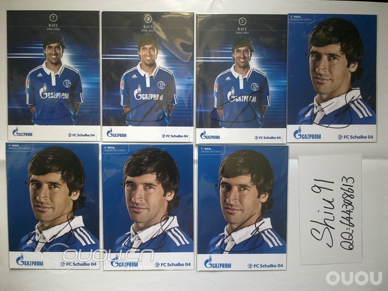 几个月以前,和一德国朋友闲聊起足球,谈及德甲,也由此谈到沙尔克的劳尔。得知我对劳尔的喜爱,朋友拍胸脯说:我认识沙尔克俱乐部的人,给你弄签名球星卡一点问题也没。当时以为只是老外的客套,可是,可是,居然在不经意的时候收到了漂洋过海的劳尔球星卡。沙尔克时代的绝版。