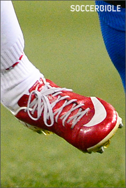 上周我们发现的最佳战靴之一来自蒙斯队的施洛米-阿贝特曼。这位效力于比利时足球甲级联赛蒙斯队的以色列前锋穿了一双红白配色的Nike Mercurial Vapor IX战靴来搭配本队的红色球衣。球衣球鞋搭配的非常漂亮。