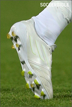 阿根廷老将胡安-里克尔梅本赛季一直穿的是双第一代的adidas adiPURE。adiPURE系列发布于2007年,有7个年头了,里克尔梅从初代已经换过几双不同的系列款了。