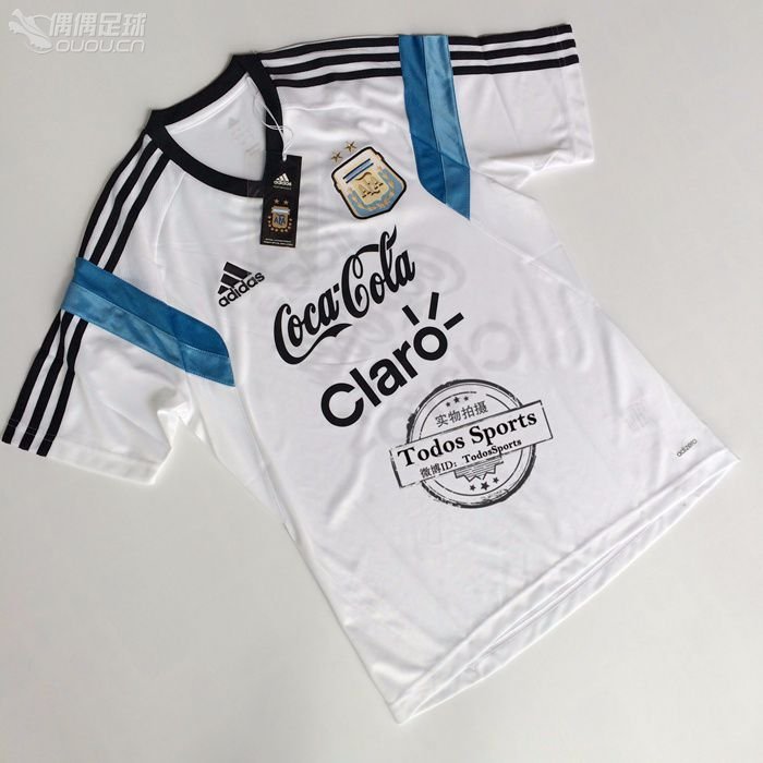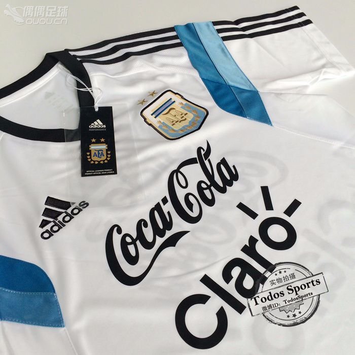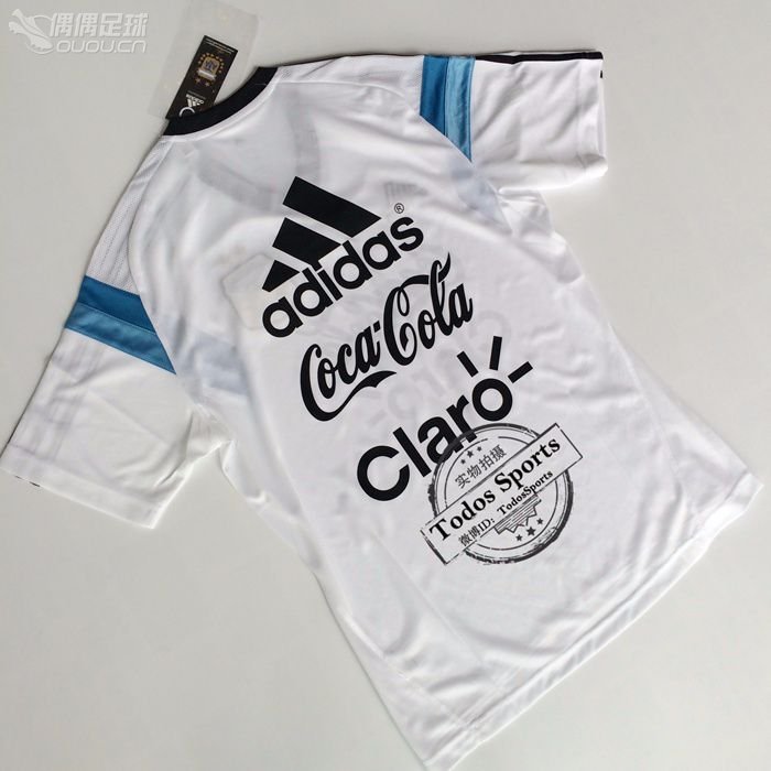 2014世界杯阿根廷主场白色V领ADIZERO球员版训练短袖带赞助