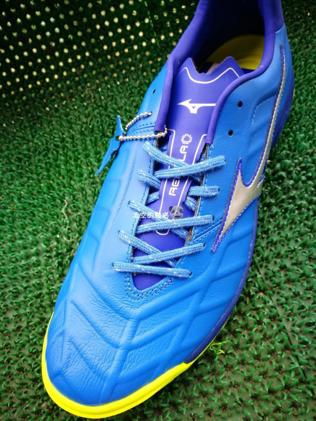 不少品牌都推出过蓝色足球鞋,不过将蓝色用的最好的还属来自日本的美津浓,比如前几年为庆祝Morelia系列诞生30周年推出的森岛宽晃复刻版Morelia 2就拥有令人为止痴迷的蓝色外观。而此次美津浓为Rebula V2 AS准备的名为“増幅の青”的配色则让你更具活力。鞋面上银色Runbird标识与大底上荧光黄色的加入让这款蓝色战靴更显活力十足。作为首次出现的AS(TF)鞋款,Mizuno Rebula V2 AS外观并没有传统TF战靴厚重的感觉,流线型的鞋身配上厚度适中的AS大底让这款战靴看起来既轻便又稳重。