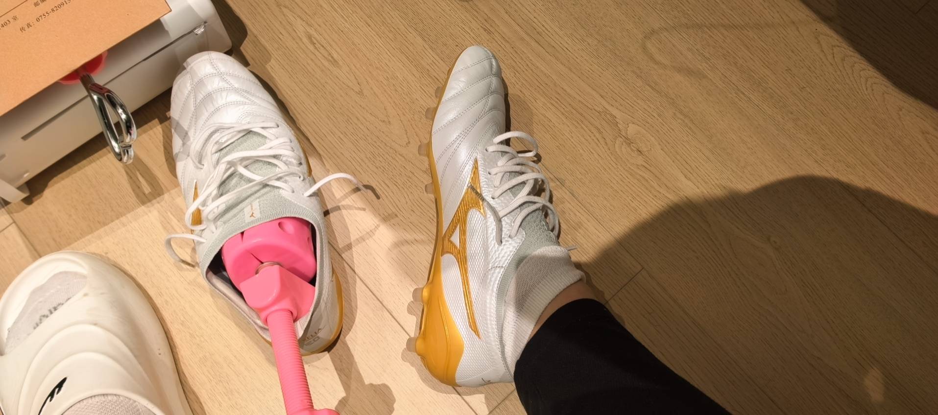 @吸烟客 我是用鞋拔子穿。说实话,这个鞋还是贵了,要是按照性能来说,它的ag大底还存在不少毛病,后跟缓震很差,在潮湿的中等人草上打滑,质感也比fg版本差很多。原本我也是非常中意白金配色,冷静了下,还是忍住了,毕竟这个价位可以选两双顶级了。最近穿了dslight ag,天朗蛇年全袋鼠皮,觉得只是风格不同,差距不大。可以等一下天朗这双,期待美津浓做出的ag大底,天朗搞出来了。