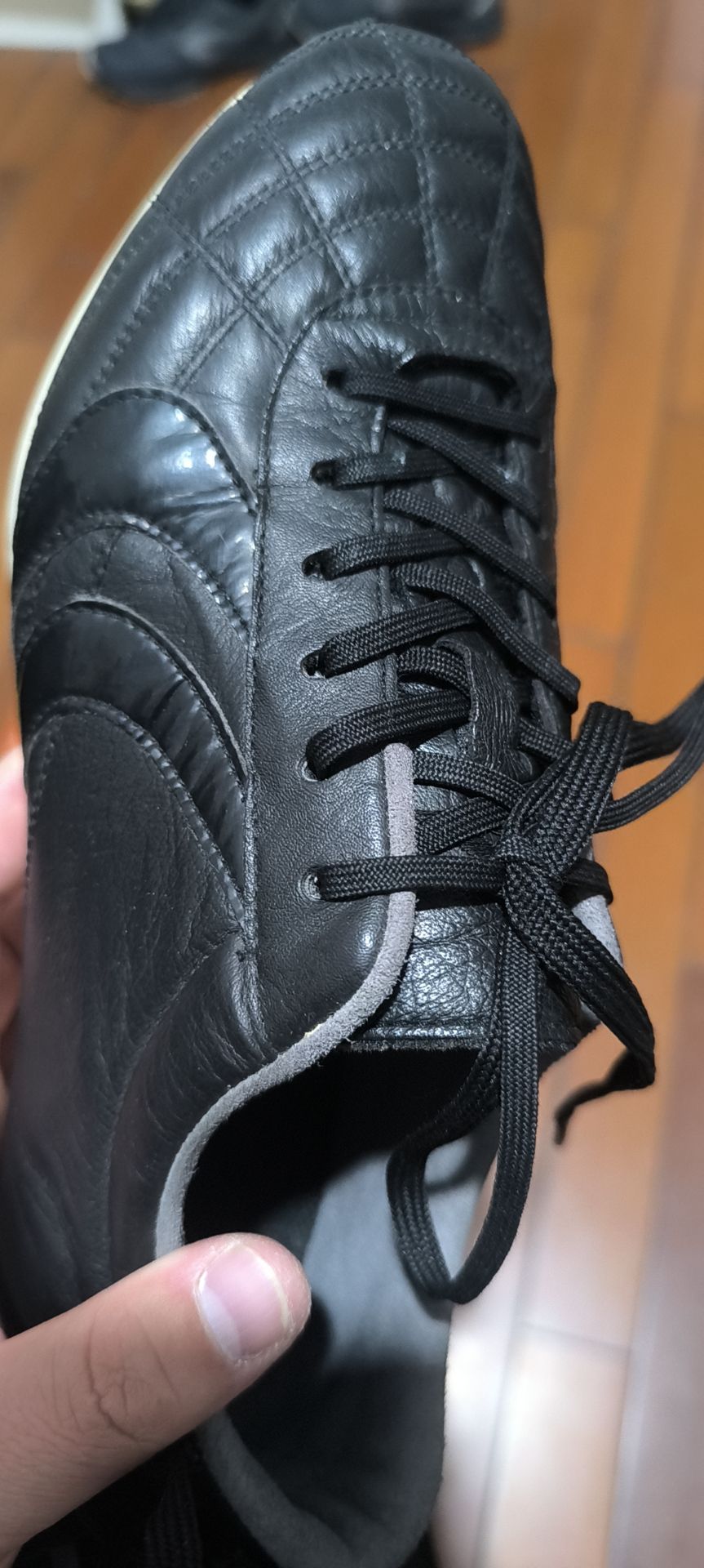 这双鞋是yasuda重生以后,生产的第二款球鞋,2019年的,皮质依然销魂,做工依然精致,真正的好鞋!全黑配色!非常耐看!十分经典!