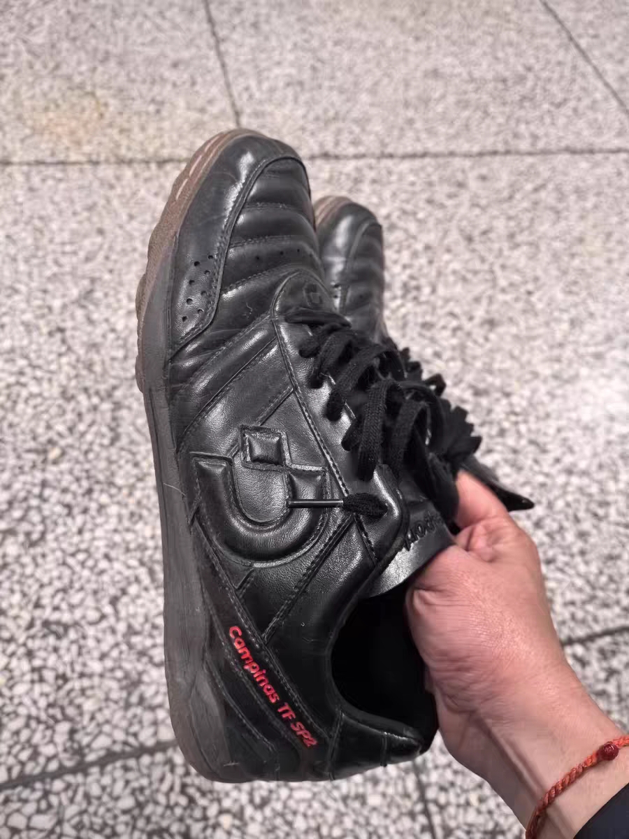 第一,其实最最最老生常谈的问题,而且这个问题我全网几乎没有看到反馈的问题,正是这个问题让我对这鞋彻底死心,决定闲鱼卖掉。那就是前掌正脚背那个小logo压二三脚趾的问题。为什么我全网没看到反馈但还是说老生常谈,因为我闲鱼挂出去这双鞋后就有两个人来找我聊这鞋,说这是体士彪球鞋一直以来的通病,非要画蛇添足搞这个小logo,那个从鞋外侧看是一个压印,但鞋内应该是一个类似刺绣的东西,那个地方里面特别厚,凸出来了一块,穿进去就能明显感受得到,踢半场养身局脚趾就会很痛,如果继续踢,肯定是会磨破皮的。闲鱼上那两位经常穿体士彪的哥们都说拿到这鞋第一时间就是去找修鞋铺,处理那个地方。具体怎么处理他们也不知道,反正挺麻烦,据说是先把鞋舌拆下来,对那个小logo内测进行打磨,再装回鞋舌。我苦于家附近雀食没看见修鞋铺,所以最后还是没能处理。让有能力的哥们拿去发挥他的价值吧。