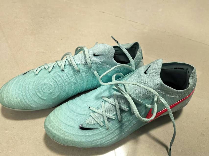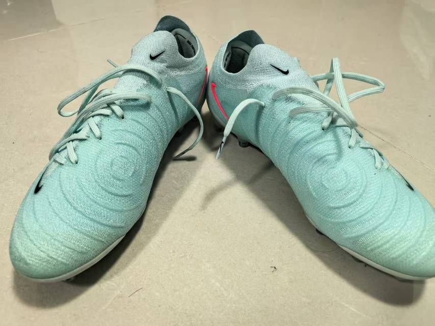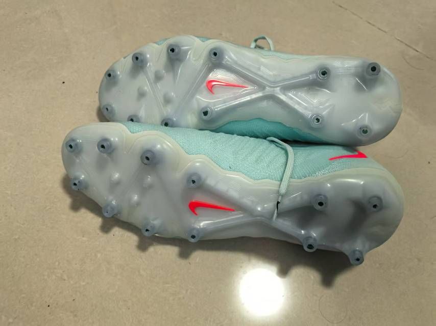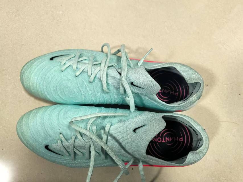 43码。女朋友送的,尺码小了,前面压脚趾,下地1场,球都没怎么碰,脚趾快爆炸了半场就滚下去了。