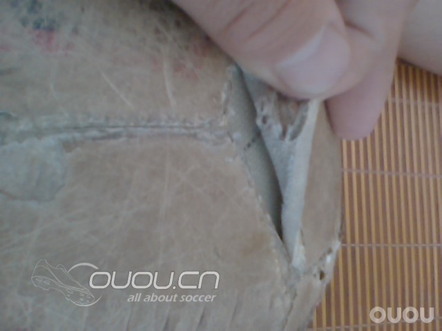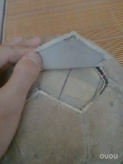 这个球已经买了挺久了,可以说是久经战阵千疮百孔了,由于是机缝的所以前天踢球的时候发现球的皮子开线了,拿回家决定练练手缝缝看。。。从小没有怎么缝过东西,所以成果还是很粗糙的。有图有真相。。。。。缝足球是体力活累死了。。。。。